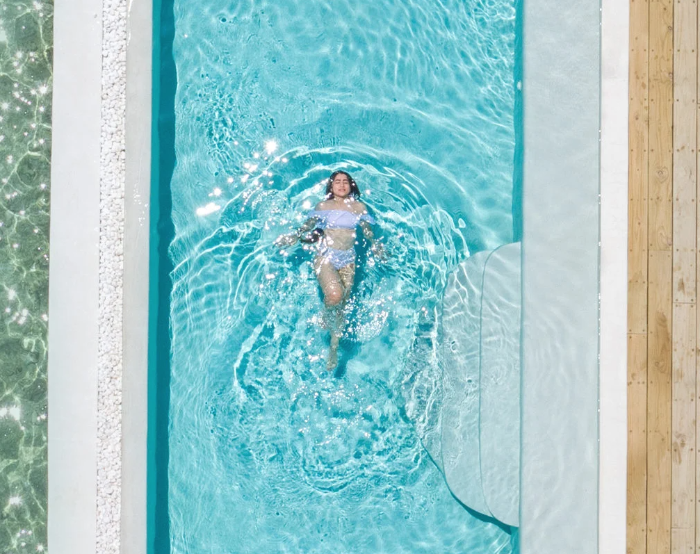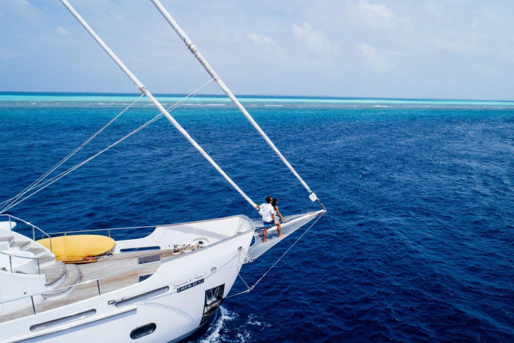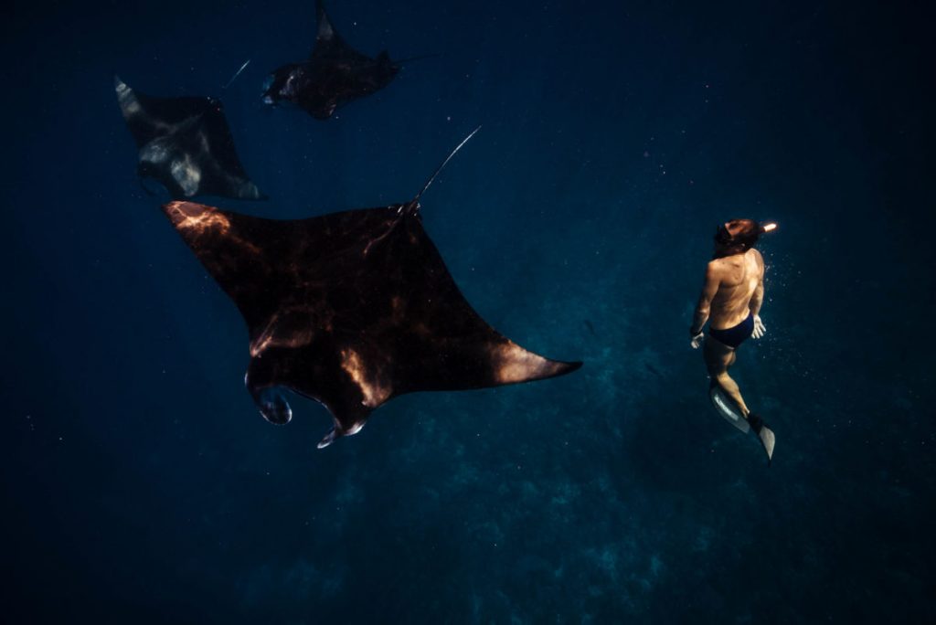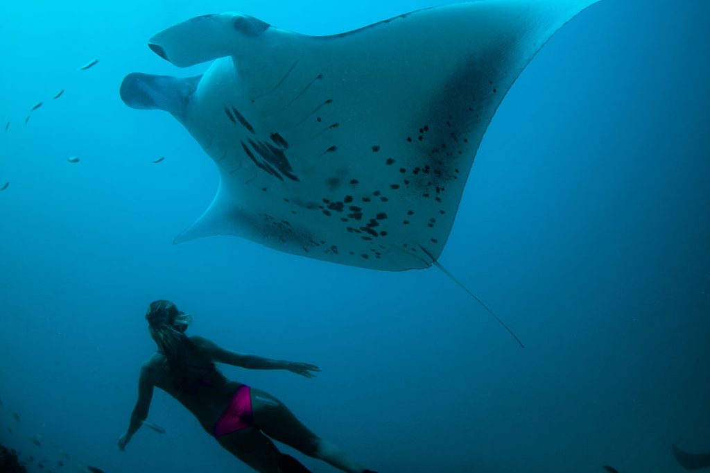 From the deck, take a cooling dip in the private pool, step directly into the balmy sea, or take the plunge from the villa’s own slide. The spacious alfresco living space includes comfortable loungers, a sunken seating area, and catamaran nets over the ocean, as well as a private and secluded outdoor bathroom with an outdoor bath and shower, and direct access to and from the sea. On the upper level, a large deck includes a sheltered dining sala and a comfortable oversized daybed.